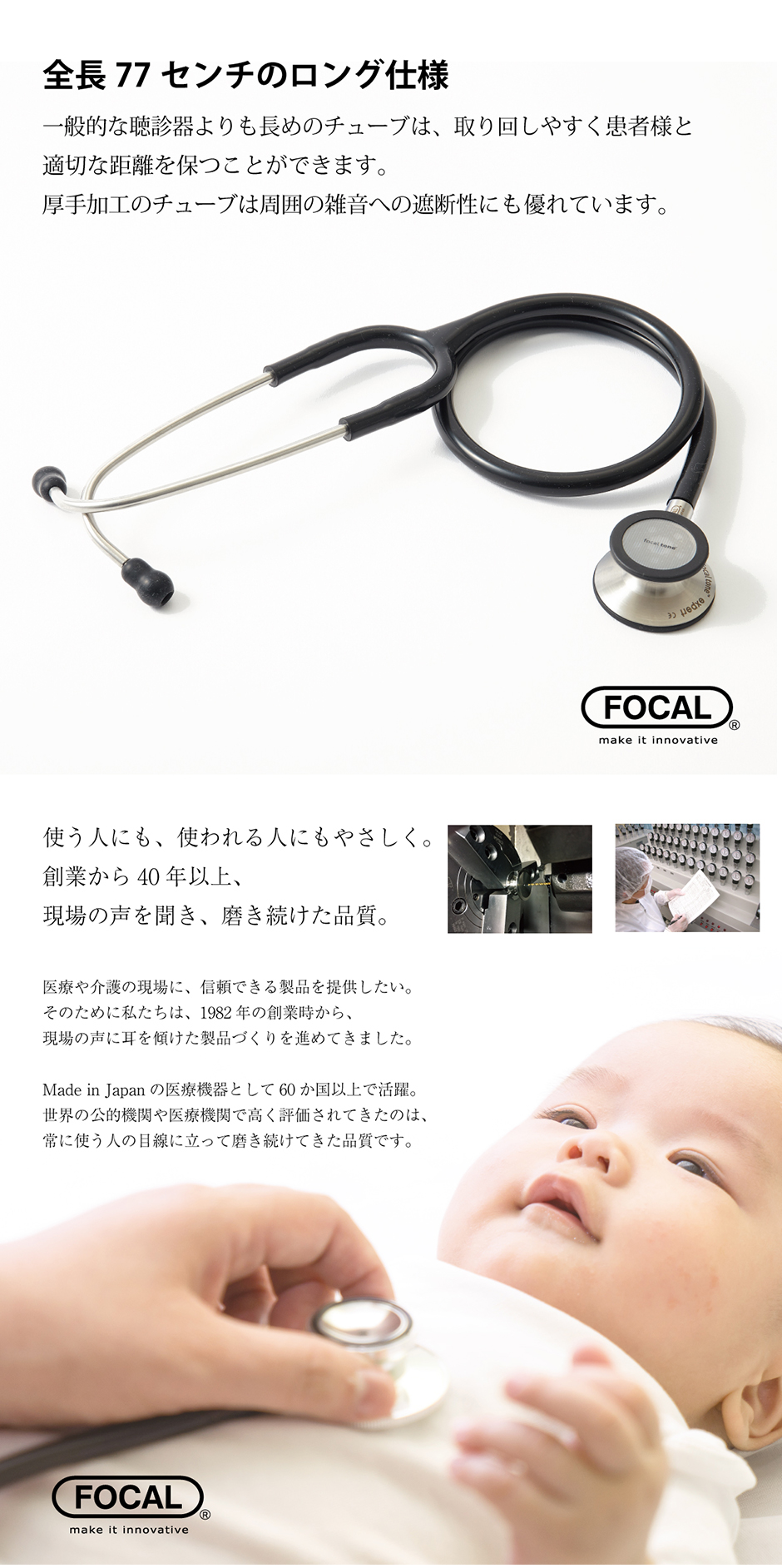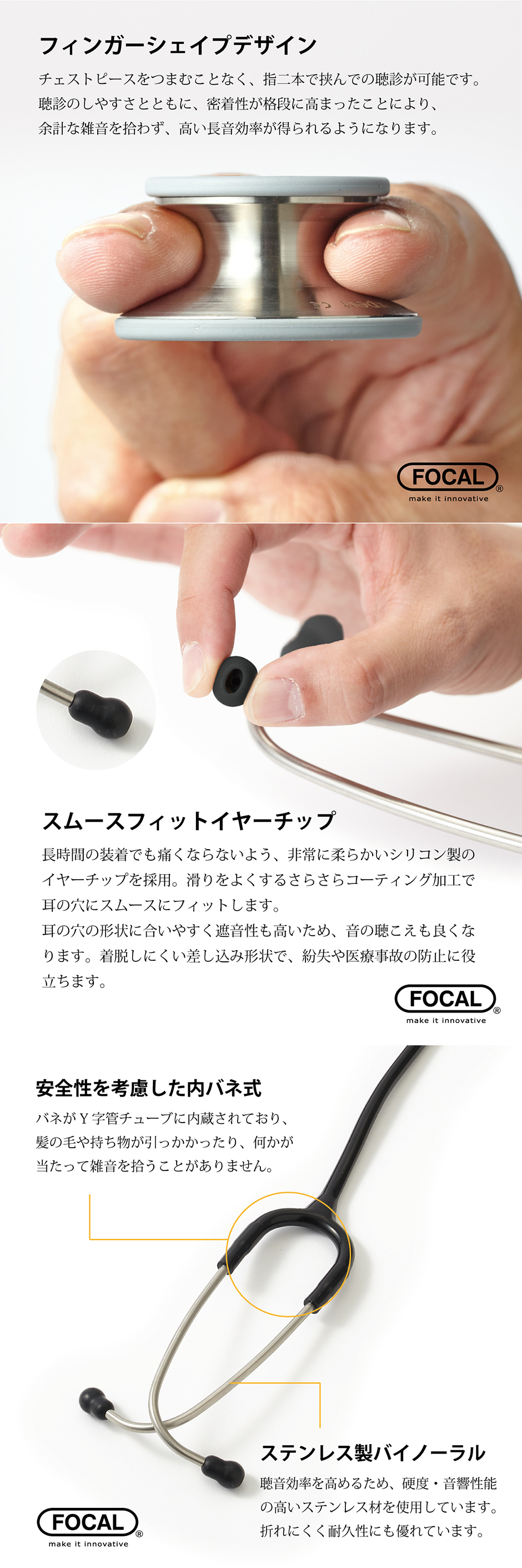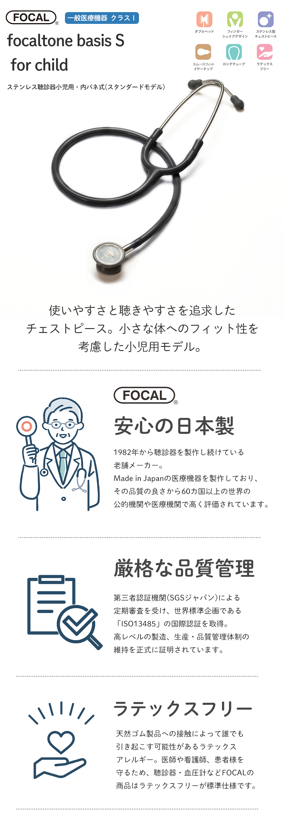 [日本製] FOCAL フォーカル 聴診器 小児用 フォーカルトーン focaltone basis S for child ダブルタイプ 内バネ式 オールステンレス 一般医療機器 医療用 病院 クリニック 看護師 ナース 看護学生 医師 ドクター 研修医 診察 医療 国内正規品