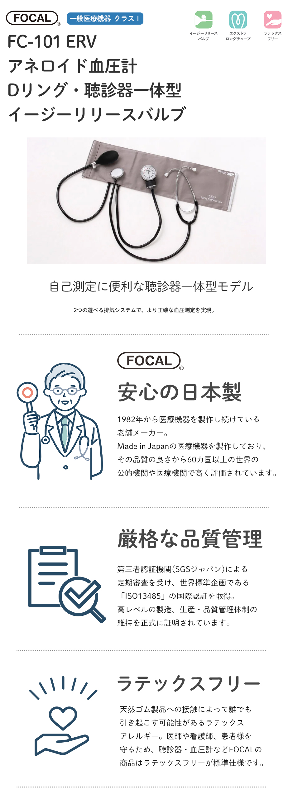[日本製] FOCAL フォーカル 血圧計 アネロイド血圧計 Dリング・聴診器一体型 イージーリリースバルブ FC-101 ERV ダブルタイプ 一般医療機器 医療用 病院 クリニック 看護師 ナース 看護学生 医師 ドクター 研修医 診察 医療 国内正規品