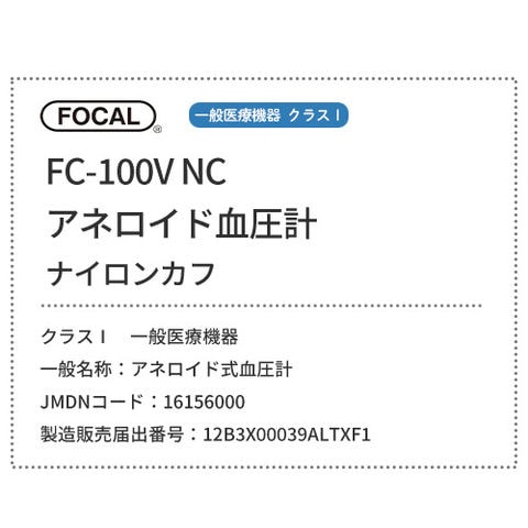 [日本製] FOCAL フォーカル 血圧計 アネロイド血圧計 ナイロンカフ FC-100V NC ダブルタイプ 一般医療機器 医療用 病院 クリニック 看護師 ナース 看護学生 医師 ドクター 研修医 医療 国内正規品