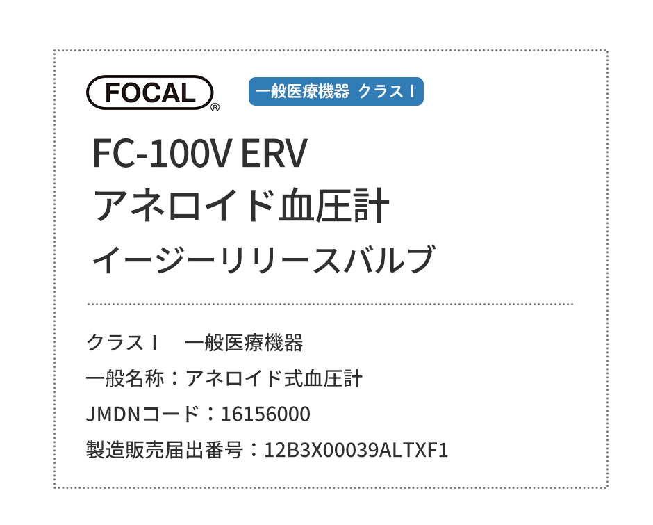 [日本製] FOCAL フォーカル 血圧計 アネロイド血圧計 コットンカフ イージーリリースバルブ FC-100V ERV ダブルタイプ 一般医療機器 医療用 病院 クリニック 看護師 ナース 看護学生 医師 ドクター 研修医 医療 国内正規品