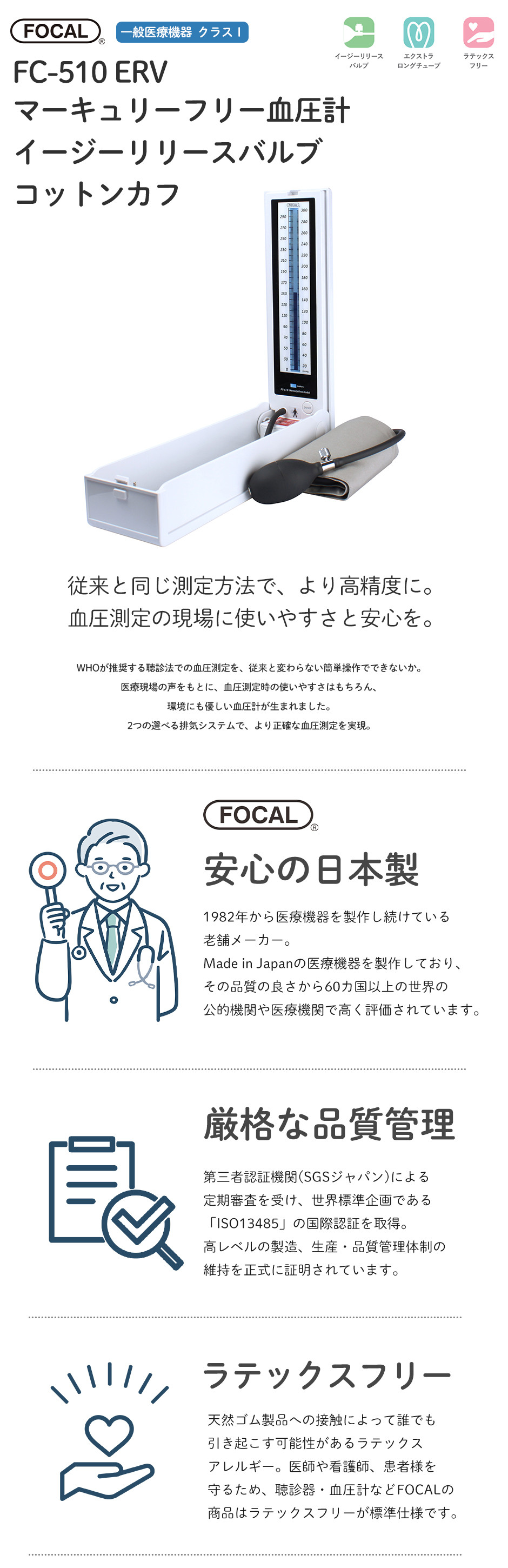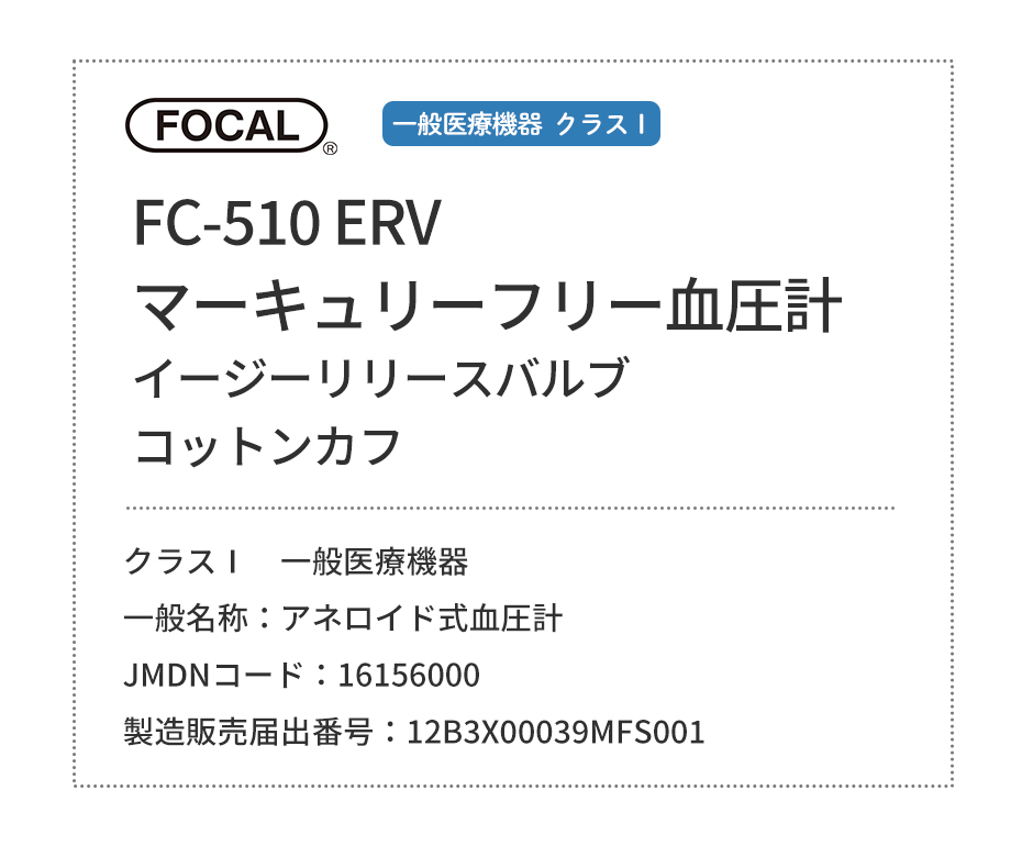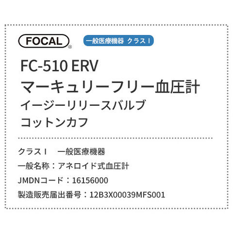 [メーカー正規品] FOCAL フォーカル 血圧計 マーキュリーフリー血圧計 コットンカフ イージーリリースバルブ FC-510 ERV ダブルタイプ 一般医療機器 医療用 病院 クリニック 看護師 ナース 看護学生 医師 ドクター 研修医 医療