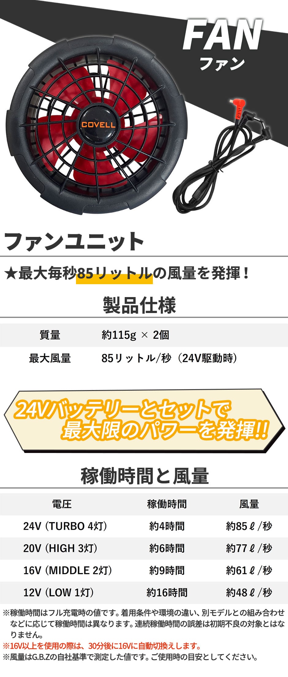 【即日出荷】G.B.Z 空調作業服 2025 ファンセット COVELL 最新 新作 作業着 85L ファン 8時間連続稼働 EFウェア 105L 作業服 春夏 猛暑 暑さ対策 強力 2025モデル かっこいい 熱中症対策