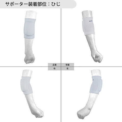 | 軽さと衝撃吸収を両立させた2層パッド!ショートタイプで動きやすい軽量パッド付ひじサポーター ▼バレーボール用ひじサポーターの特長 軽さとフィット感を両立させたショートタイプのサポーターです。 (1) 13mm厚型の軽量ソフトパッドと衝撃吸収パッドの2層構造でパフォーマンスをサポートします。 (2) パッド上部(肩側)にスリットを入れ、ひじの動きやすさをアップさせました。 (3) サポーター生地は高い伸縮性で装着しやすく、ひじの動きに柔軟にフィットします。 (4) サポーターはかさばりが気になりにくいショートタイプで、動きをスムーズにします。 ▼こんな方におすすめ ・バレーやフットサル、ボルダリングなどスポーツ時や、バイクや自転車、ダンス等でのけが予防にご使用ください。 ・ひじを床につく動作が多い作業時にも、ひじの保護用としてご使用ください。 ▼装着方法 ・サポーターの上下(ロゴが肩側)を確認してください。 ・ひじ関節の骨の出っ張りがパッドの中心にくるように、パッドの位置を合わせて着用してください。 ■サイズ目安(ひじ頭周り) 24~28cm ■お手入れ 30度を限度に、手洗いをしてください。 汚れた場合は、中性洗剤を溶かしたぬるま湯で手洗いしてください。 ドライクリーニングや乾燥機、脱水機、漂白剤などの使用は避けてください。 ※洗濯後は陰干しし、十分乾燥させてください。 |