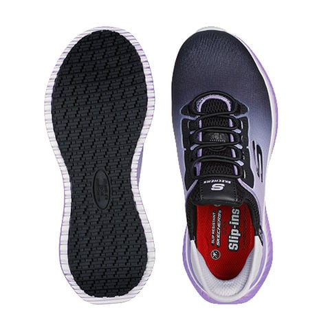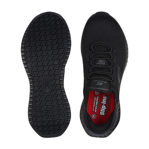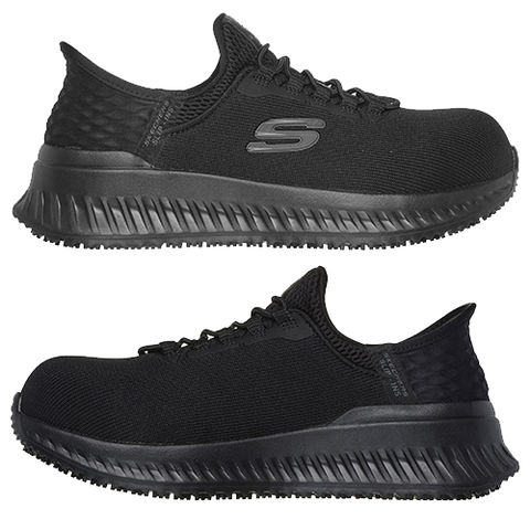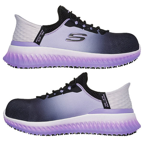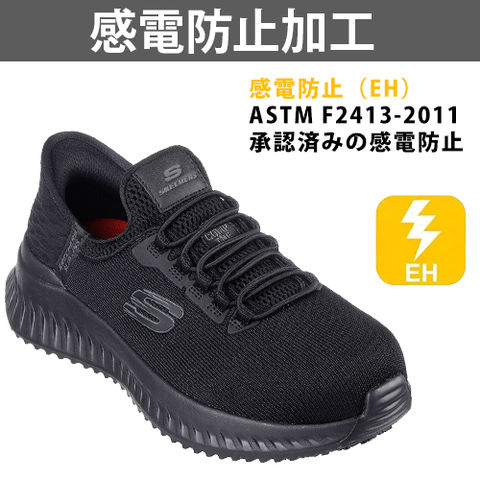 | Skechers Hands Free Slip-ins(スケッチャーズ ハンズフリー スリップインズ)形状のヒールパネルが、すぐに足にフィット。独自のHeel Pillow(ヒールピロー)で足をしっかり固定。非金属のコンポジットセーフティトゥのフロントはASTM F2413の衝撃・圧縮基準を満たしています。感電の危険(EH)に対する安全性は、ASTM-F2413により検査済み。防滑機能を備えたトラクションアウトソール。クッション性のあるSkechers Air-Cooled Memory Foam(スケッチャーズ エアクールドメモリーフォーム)コンフォートインソール |