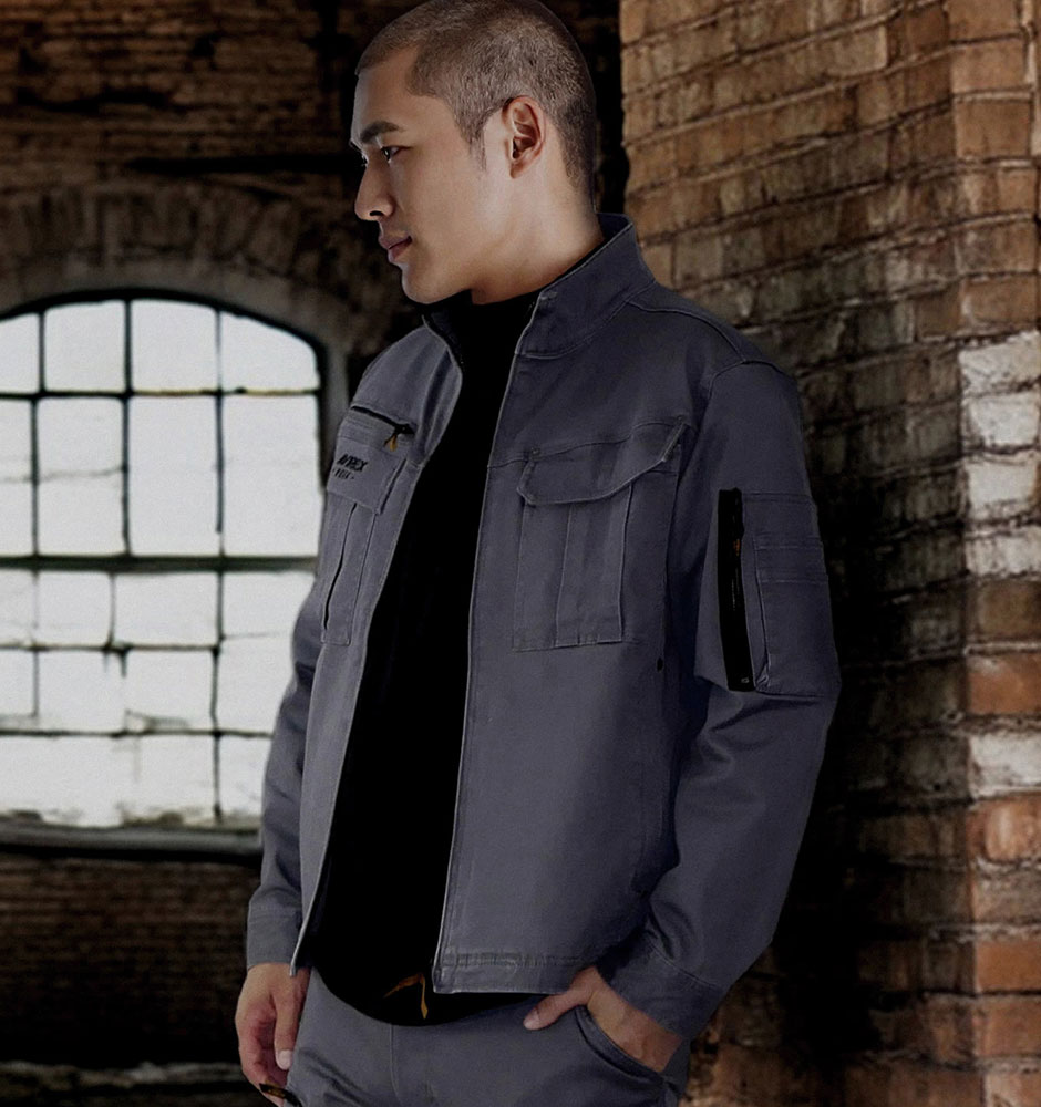 左袖の多機能ポケットや両脇のファスナーポケットなど実用的な収納を備え作業時にも街着としても活躍します。
