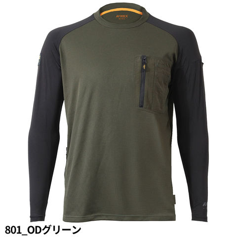 Tシャツ 長袖 avirex アヴィレックス AVIREX WORK ハイブリッドTシャツ 長袖Tシャツ 接触冷感 ストレッチ 消臭 左胸ポケット カッコいい 建築 建設 土木 工事 現場 農作業 アウトドア スポーツ キャンプ 登山 トレッキング ハイキング 釣り サイクリング 通勤 通学 普段