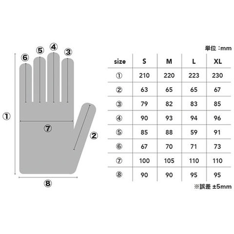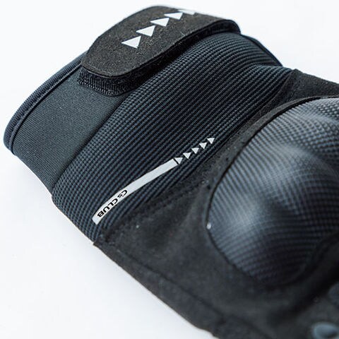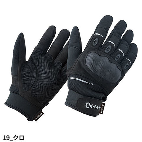 | 手の甲部には薄型軽量プロテクター搭載!指の先まで保護するフルフィンガー縫製手袋。また指の保護と蒸れを軽減させるプロテクトラバーポートを搭載。随所に施した高輝度反射により視認性の向上と、高い安全性を追求。人工皮革を主要部分に使用することにより、耐久性と撥水性も向上。指先はスマホ対応モデル。 |