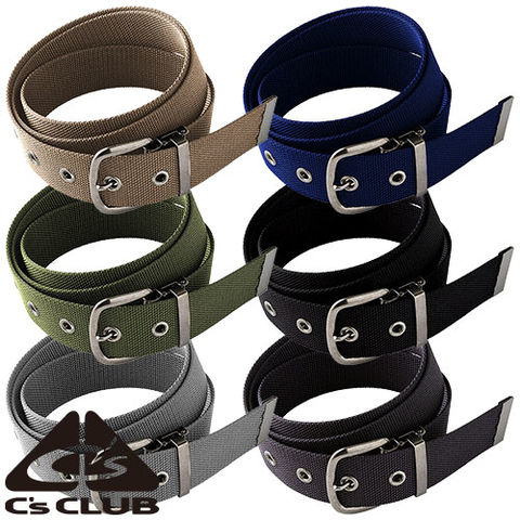 | C'sCLUB(シーズクラブ)のワーキングベルトコレクションの一つであるワンピンナイロンベルト。ワンピンバックル留めで、4cm幅の丈夫なナイロン製のベルトです。 |