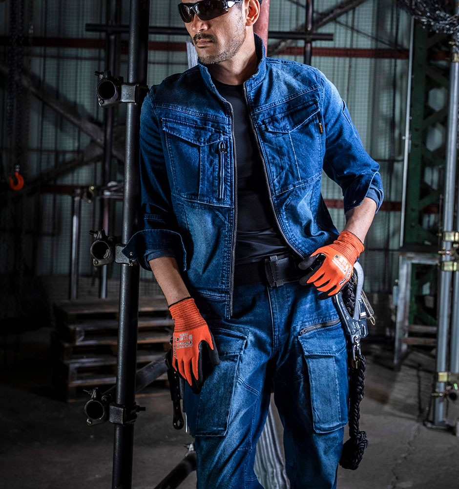 立体裁断・高ストレッチ性・作業性を重視した動けるストレッチデニムシリーズ