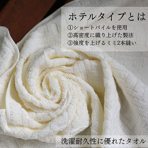 ●ホテルで使用されているタオルのように、短パイル仕様でしっかり織り上げたタオルです。
