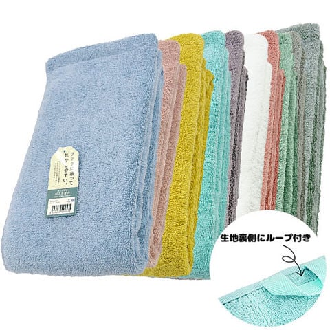 タオル 吊るせるバスタオル ローキーカラー BP494401、BP494402、BP494403、BP494404、BP494405、BP494410、BP494412、BP494414、BP494428、BP494429 やわらかい ボリューム感 肌触りが良い 滑らか 吸水性