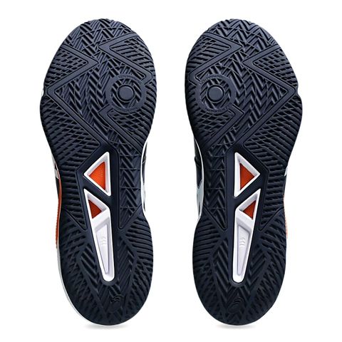 ●ステップワークを支える安定性:中足部に搭載した樹脂パーツが複数の方向へのステップで過度なねじれを抑制。さらに、一歩一歩のパワーを次のステップへと繋げるように外側への倒れこみをサポート。