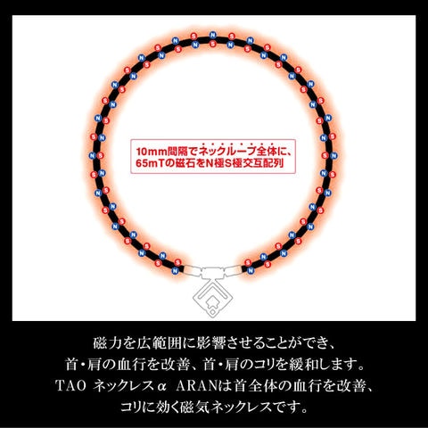 「α ARAN」は、65ミリテスラの強い磁力で、より高い効果が期待できます。