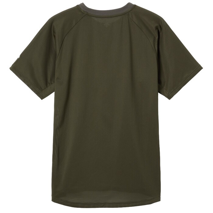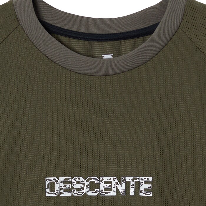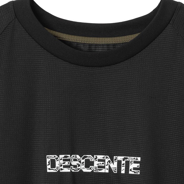 胸元には迷彩柄のプリントを施しています。通気性を阻害しないよう、1色の抜きプリントにしている点もデザインポイントです。
