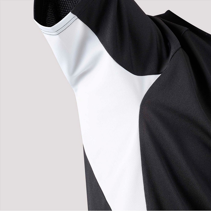 腕の振り上げ動作を意識したラグランスリーブを採用しています。