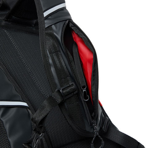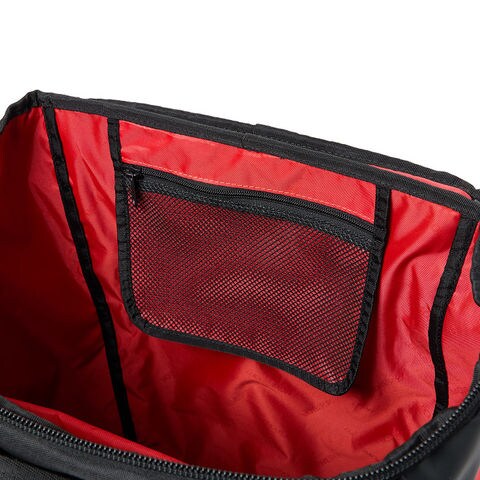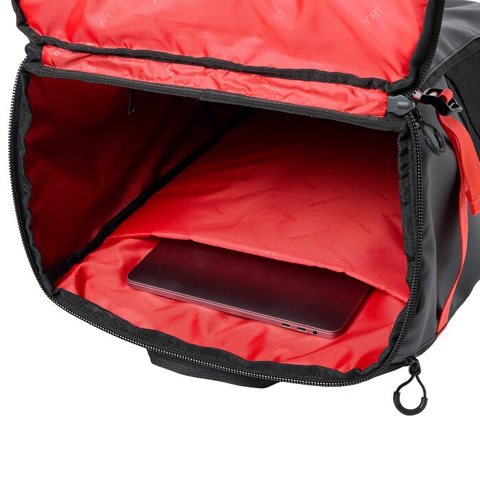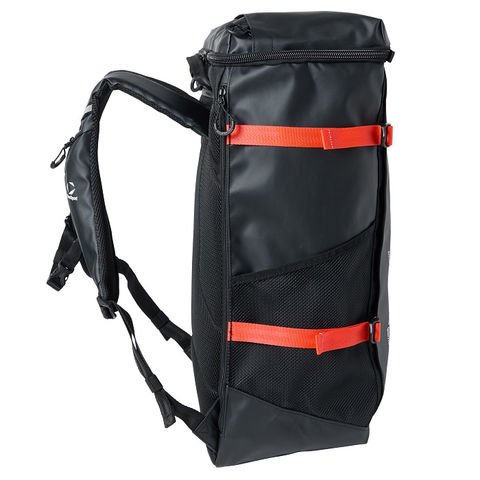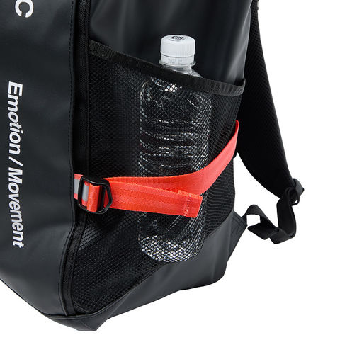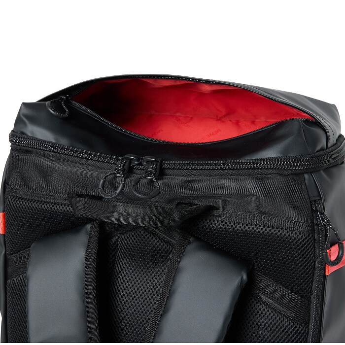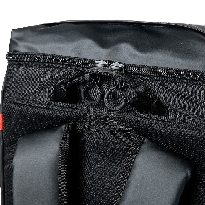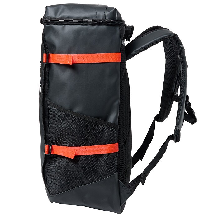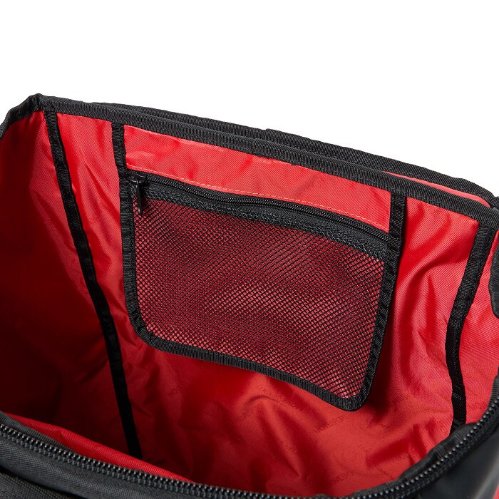 両サイドには大容量で便利なメッシュポケット、アクセス便利な蓋部ポケットと、充実の収納力です。