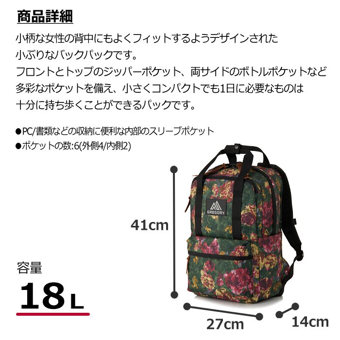 (国内正規品)グレゴリー【 GREGORY 】 イージーピージーデイ ボタニカルタペストリー 18L リュック 小さめ バックパック 2026年春夏新色【 103868A773 リュックサック アウトドア カジュアル レディース 】【翌日配達対象】[自社]