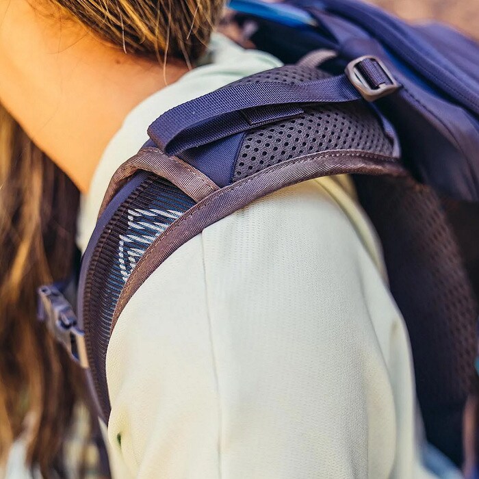 ●肌に近い部分に滑らかな表面と通気性のあるメッシュを備えたパッド入りのショルダーストラップで快適さを実現。