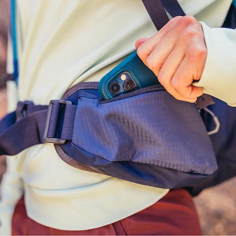 ●ほとんどの一般的な携帯電話が収まる大きさのヒップベルトのジッパー付きポケット。