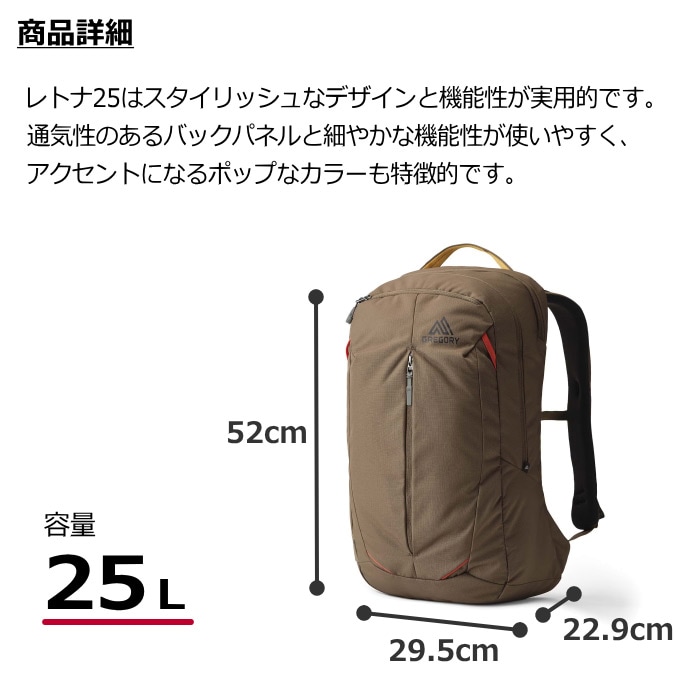 (国内正規品)グレゴリー【 GREGORY 】 バックパック レトナ25 メサブラウン リュック 25L 2026年春夏継続モデル【 150948D789 RETNA25 リュックサック アウトドア カジュアル メンズ レディース 】【翌日配達対象】[自社]