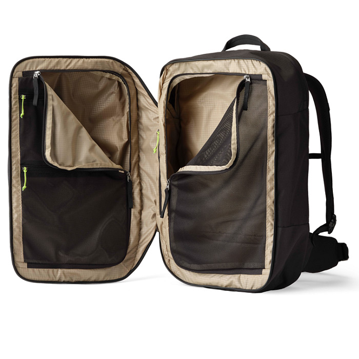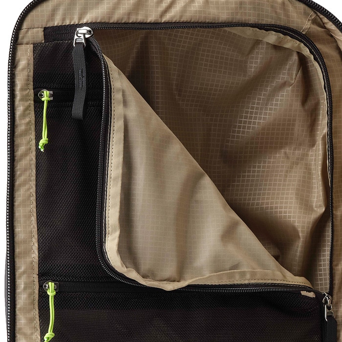 ●パッド入りで保護されたフロントパネルを備えた、スーツケースのようにアクセスできる、スプリットケース設計。