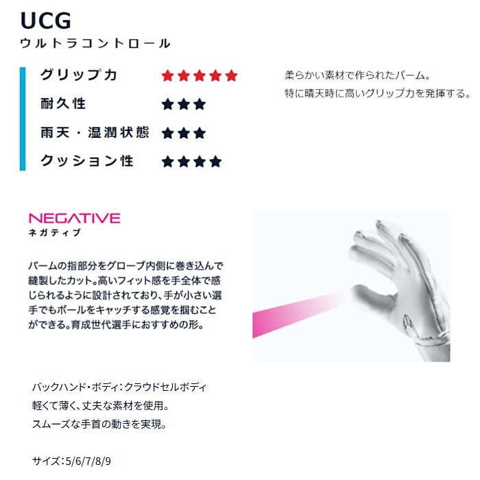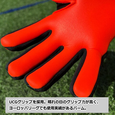 UCGグリップを採用。晴れの日のグリップ力が高く、ヨーロッパリーグでも使用実績があるパームは、あなたのキャッチング精度をアップしてくれるだろう。