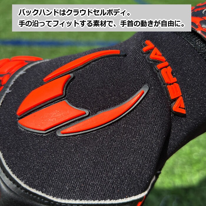 バックハンドはクラウドセルボディ。手の沿ってフィットする素材で、手首の動きが自由だ。