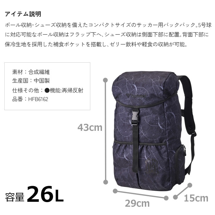 ヒュンメル【 hummel 】サッカー リュック フットボールバックパック 26 2026年春夏モデル【 HFB6162 バックパック リュックサック シューズ収納 ボール収納 フットサル ハンドボール 】【翌日配達対象】[自社]