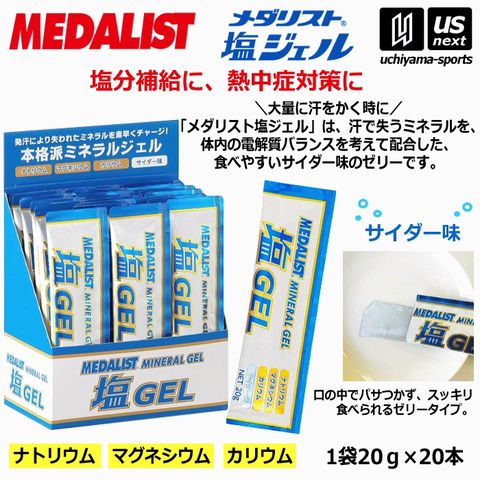 メダリスト【 MEDALIST 】塩ジェル サイダー味 20g×20袋入り 塩分補給用ジェル ミネラル補給 スポーツゼリー【0008 熱中症対策 暑さ対策 パウチゼリー エネルギー補給】【翌日配達対象】[自社]