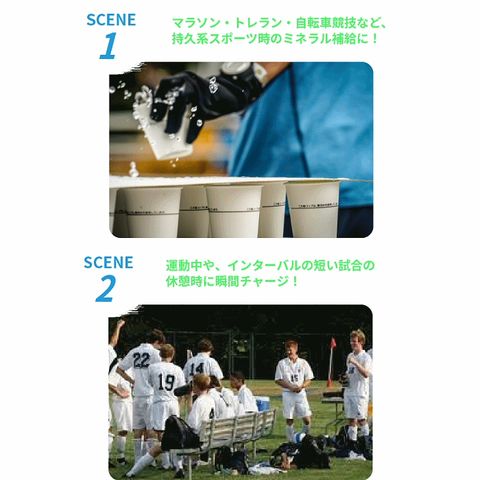 ●ミネラル補給に特化した配合・・・発汗で失われるミネラル(ナトリウム・カリウム・マグネシウム)を1袋20gに高配合。カラダへの吸収を速めるため、ナトリウムと糖をバランス良く配合。1袋で経口補水液250mL相当のミネラルと糖を補給することができます。