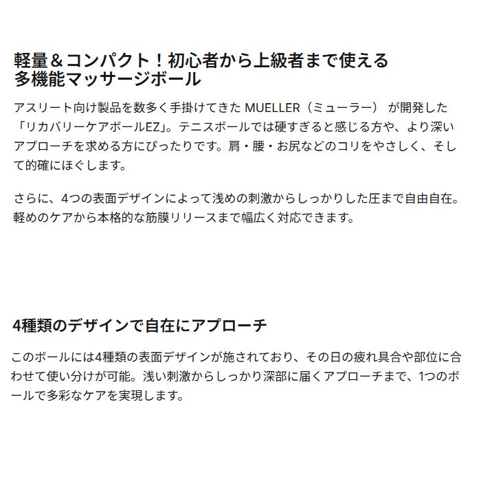 アスリート向け製品を数多く手掛けてきた MUELLER(ミューラー) が開発した「リカバリーケアボールEZ」。