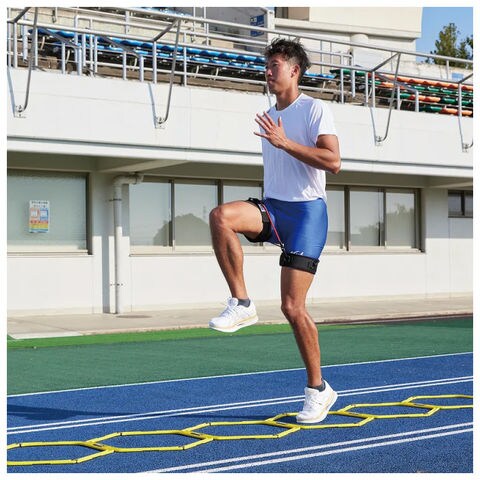 本品は、ゴムの張力を利用して脚の流れを抑え、脚の素早い切り替え能力を身に付けることを目的としたトレーニングアイテムです。