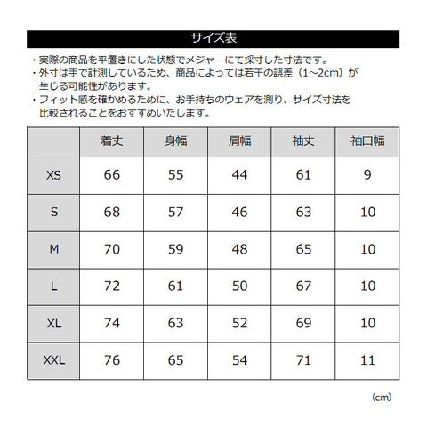 ■サイズ XS S M L XL XXL(メンズ)