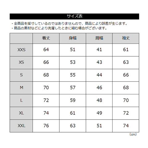 ■サイズ XXS XS S M L XL XXL(メンズ)