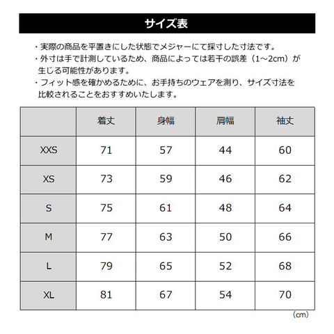 ■サイズ XXS XS S M L XL(メンズ)