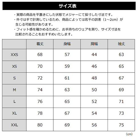 ■サイズ XXS XS S M L XL XXL(メンズ)