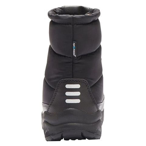 THE NORTH FACEで高い人気を誇る、高機能ウィンターブーツの子供用ウォータープルーフモデルです。素材には、はっ水加工を施した100%リサイクルリップストップナイロンを使用し、オリジナルのテックプルーフ防水メンブレンにより、内部の蒸れを排出しながら外部からの水の浸入を軽減。中わたには濡れてもロフト低下が少ないサーモライトエコメイドを保温材として封入しています。シューズ内部には、クッション性に優れる圧縮成型EVAミッドソールを配し、低温下でも硬くなりにくいウィンターグリップソールラバーと、氷面を捉えやすいウインターアイスポッドをアウトソールセンターに配置しています。子供の足に合わせたラスト形状で作り、日常からアクティブシーンまで多用途に活用できる機能で仕上げています。親子でのコーディネートが楽しめる大人共通のデザインです。