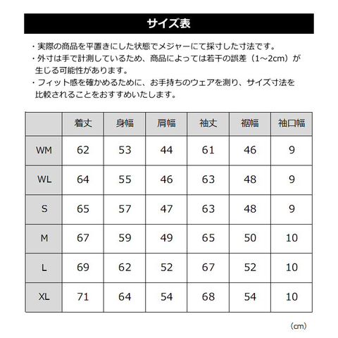 ■サイズ WM WL(レディース) S M L XL(メンズ)