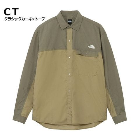 ■商品説明 THE NORTH FACEのアイコニックな肩切り替えのデザインを、シャツに落とし込んだ1着。ハリのある生地は、天然素材のようなナチュラルな風合いを持ちながら、はっ水性を持ち合わせているナイロン100%。シルエットはボックスフィットで、フロントはドットボタン仕様で、静電気の発生を抑えた静電ケアに配慮しています。アウトドアにも普段着にも使いやすいアイテム。ユニセックスモデルのため、小さめのサイズは女性の着用も可能です。