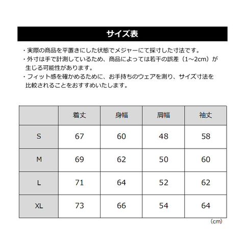 ■サイズ S M L XL(メンズ)