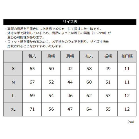 ■サイズ S M L XL(メンズ)