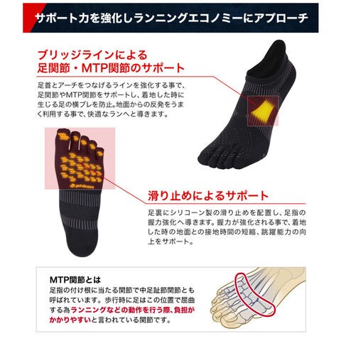 ■指先まである滑り止めが足指の握力を強化。着地時の接地時間短縮、跳躍力の向上をサポート。
