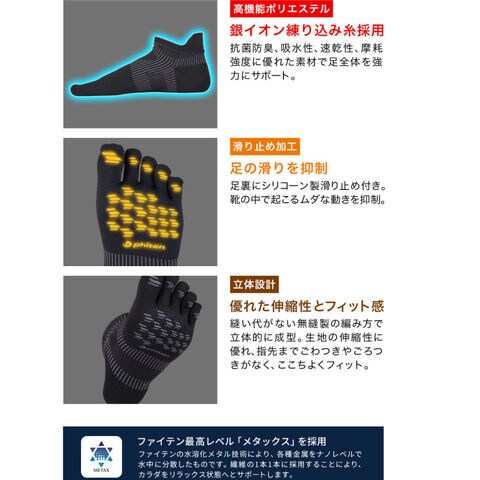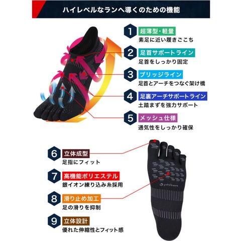 ファイテン【 phiten】ランニング専用 ソックス 足王(ソッキング)レーサー 5本指【 ソッキングレーサー スポーツ 運動 靴下 滑り止め 五本指 】【翌日配達対象】[自社]