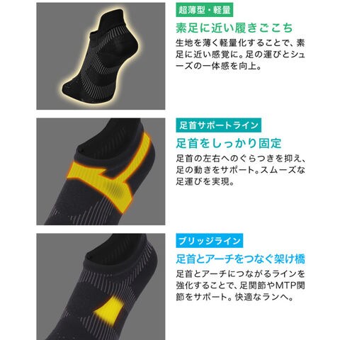 ■足首とアーチにつながるラインを強化することで足関節やMTP関節をサポート。快適なランへ。
