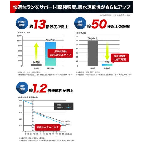 ■抗菌防臭、吸水性、速乾性、摩耗強度に優れた素材で足全体を強力にサポート。