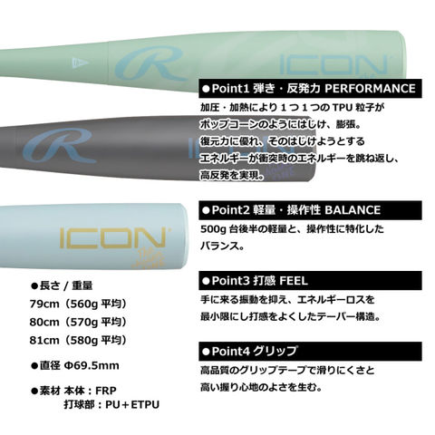 ローリングス 【 Rawlings 】 野球 ジュニア 軟式野球用 FRP製バット ICON 2026年春夏モデル 【 BJ6IONE 少年 こども 軟式野球 軟式用 バット FRPバット 練習 トレーニング 試合 】【翌日配達対象】[自社]