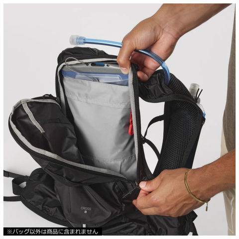 ブランドの定番トレイルランニングパックに着想を得たCross8は、ランニングはもちろんハイキングやサイクリングで必需品の携行に最適。
