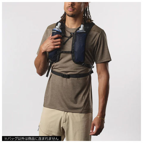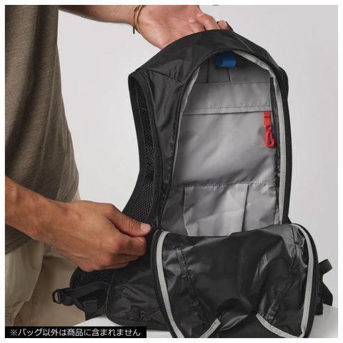 500mlソフトフラスク(別売)を収納できる2つのポケットでいつでも簡単に水分補給。1.5Lブラッダーにも対応しています。