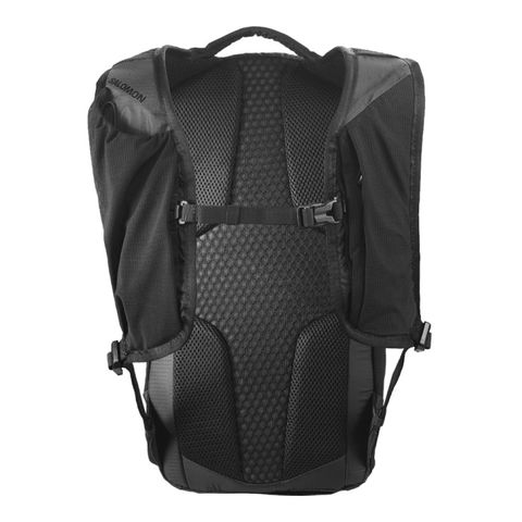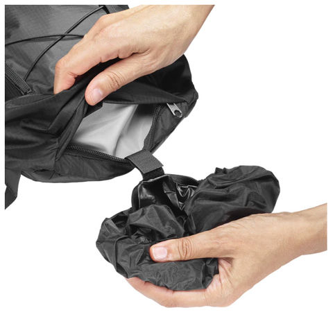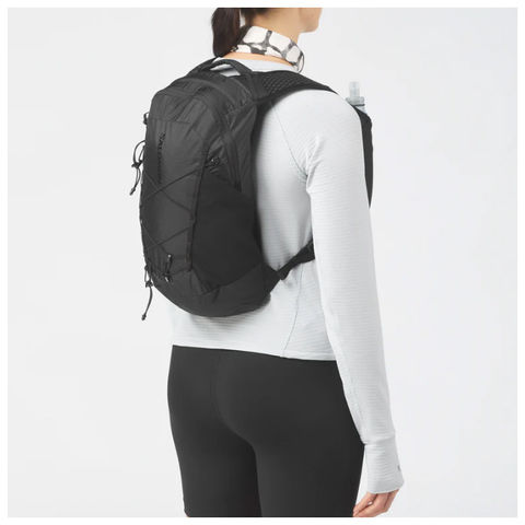 丈夫でありながら軽量なテクニカル素材を使用し、ジャケットを収納できるバンジーシステムと 500ml ソフトフラスク用ポケットを装備。さらに、ハイキングポールも持ち運べます。