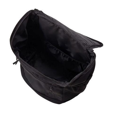 環境配慮型素材を採用。手前に大きく開くメインファスナーは、かさばるトレーニンググッズの出し入れに便利です。